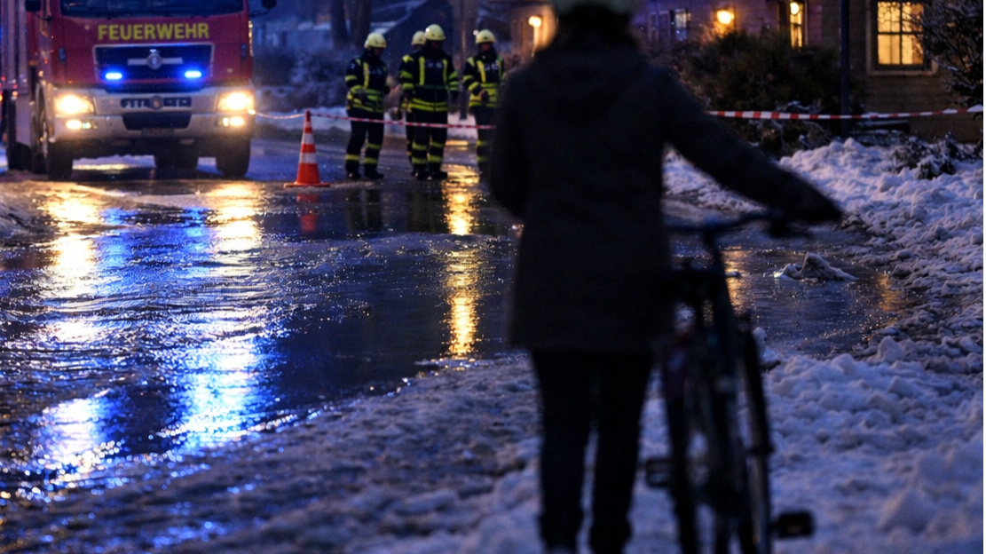 Von da an ging alles schnell. Ein Anwohner reagierte sofort, die Feuerwehr wurde alarmiert. Nur Augenblicke später durchbrachen Sirenen die Abendruhe. Blaulicht flackerte, die Straße wurde hell erleuchtet, der Bereich abgesichert. Der Bürgermeister war einer der Ersten vor Ort. Die Feuerwehr traf ein, suchte nach der Ursache, klärte Zuständigkeiten, informierte die Wasserwerke. Schließlich wurde das Wasser in der Straße abgestellt.